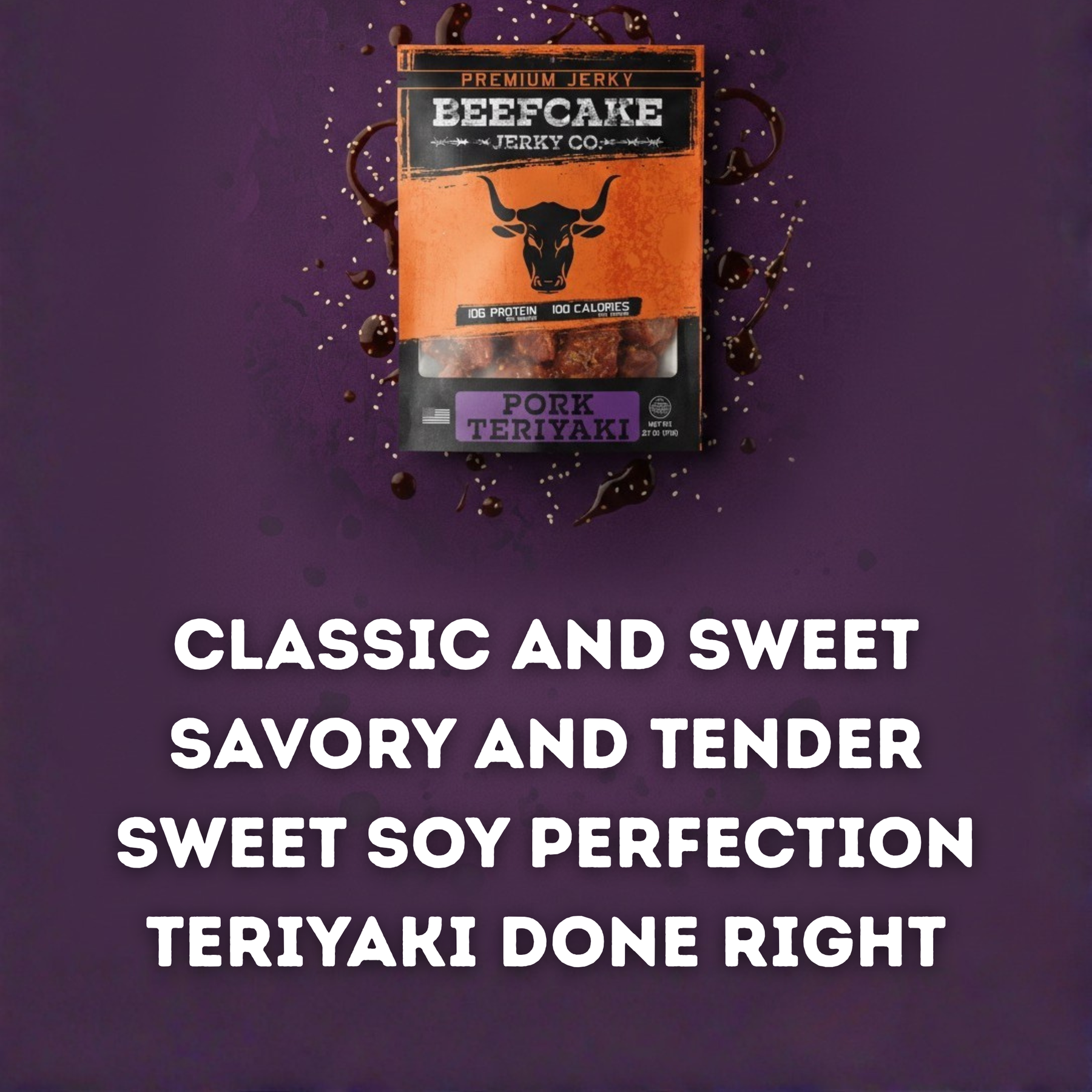 The Beefcake Pork Sampler Bundle is the perfect starting point for those who are looking to see what sets Beefcake Jerky apart from the rest! This Bundle includes 1 Bag of all four Pork Jerky Flavors we have to offer! Pork Teriyaki, Pork Honey BBQ, Pork Smokehouse BBQ, and Pork Sweet Heat! Experience the difference today with the Beefcake Pork Sampler Bundle!